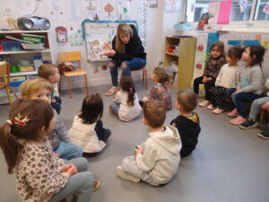 Le 5 décembre, la maman d’Athéna est venue nous présenter la Saint Nicolas, que l’on fête en Alsace, leur département d’origine. Elle nous a lu l’histoire et expliqué les coutumes liées à cette fête.